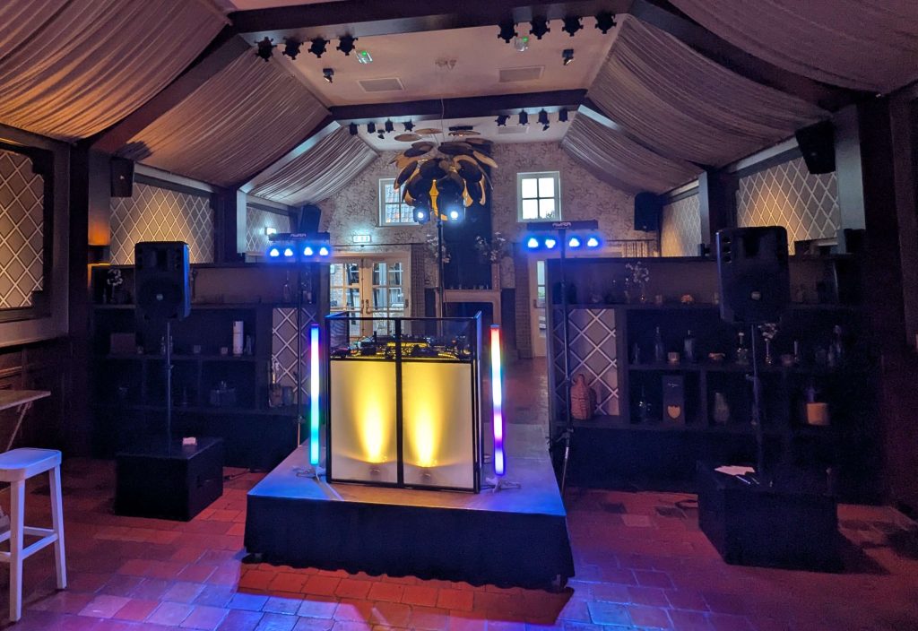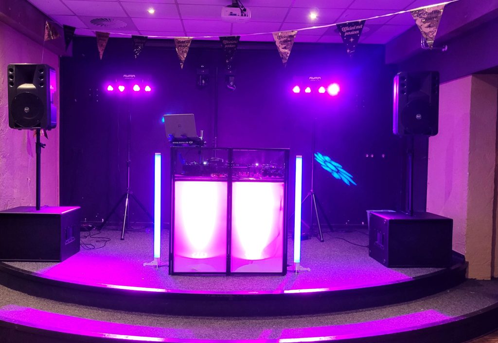 Ik beschik zelf over een professionele eigen geluidsset welke geschikt is tot ongeveer 150 personen. Deze set is erg compact en daardoor nagenoeg overal te plaatsen. Deze set wordt voorzien van de nodige feestelijke verlichting.